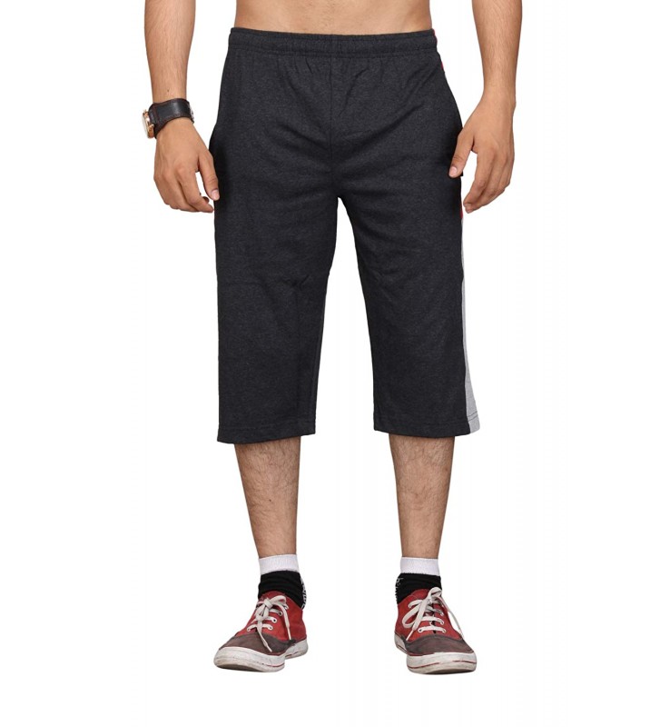 Stylcozy Men's Regular Fit Cotton Three Fourth Capri Dark Grey (SCMC11)