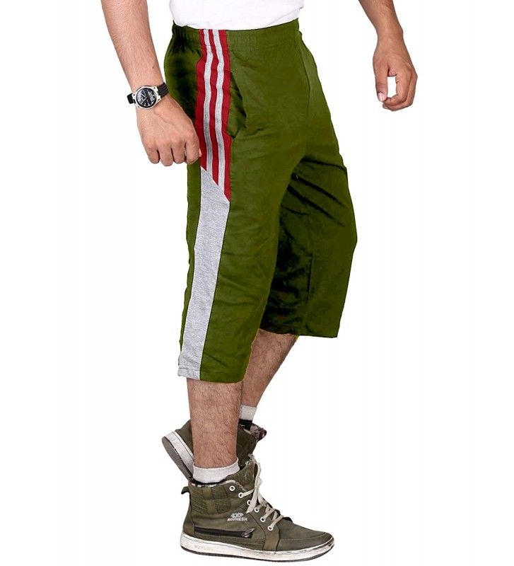 Stylcozy Men's Regular Fit Cotton Three Fourth Capri Olive (SCMC13)